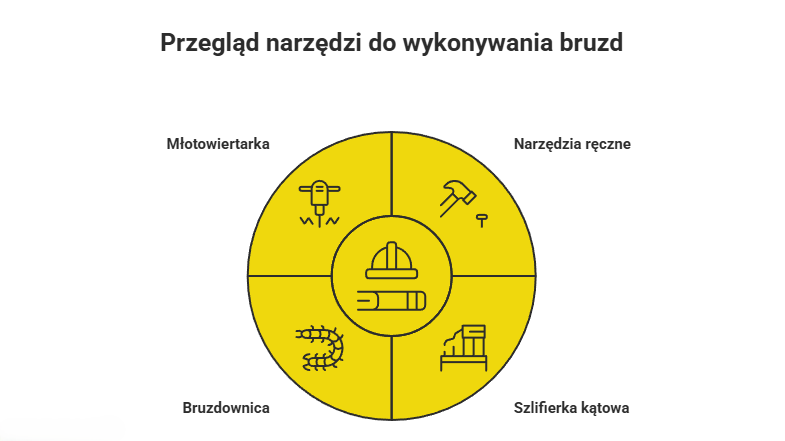 Wybór odpowiedniego narzędzia zależy od skali prac i materiału ściany. Do dużych instalacji i betonu – bruzdownica. Do krótkich odcinków i drobnych remontów – szlifierka kątowa lub ręczne narzędzia.