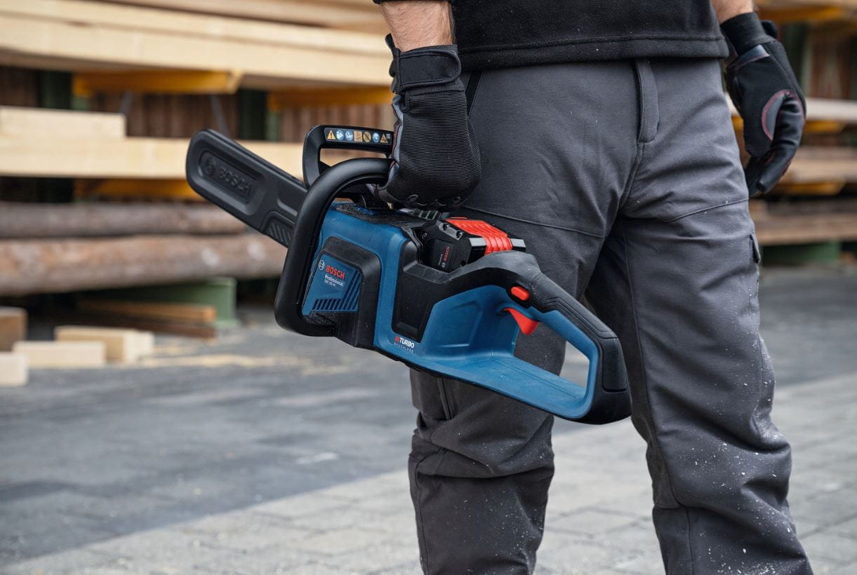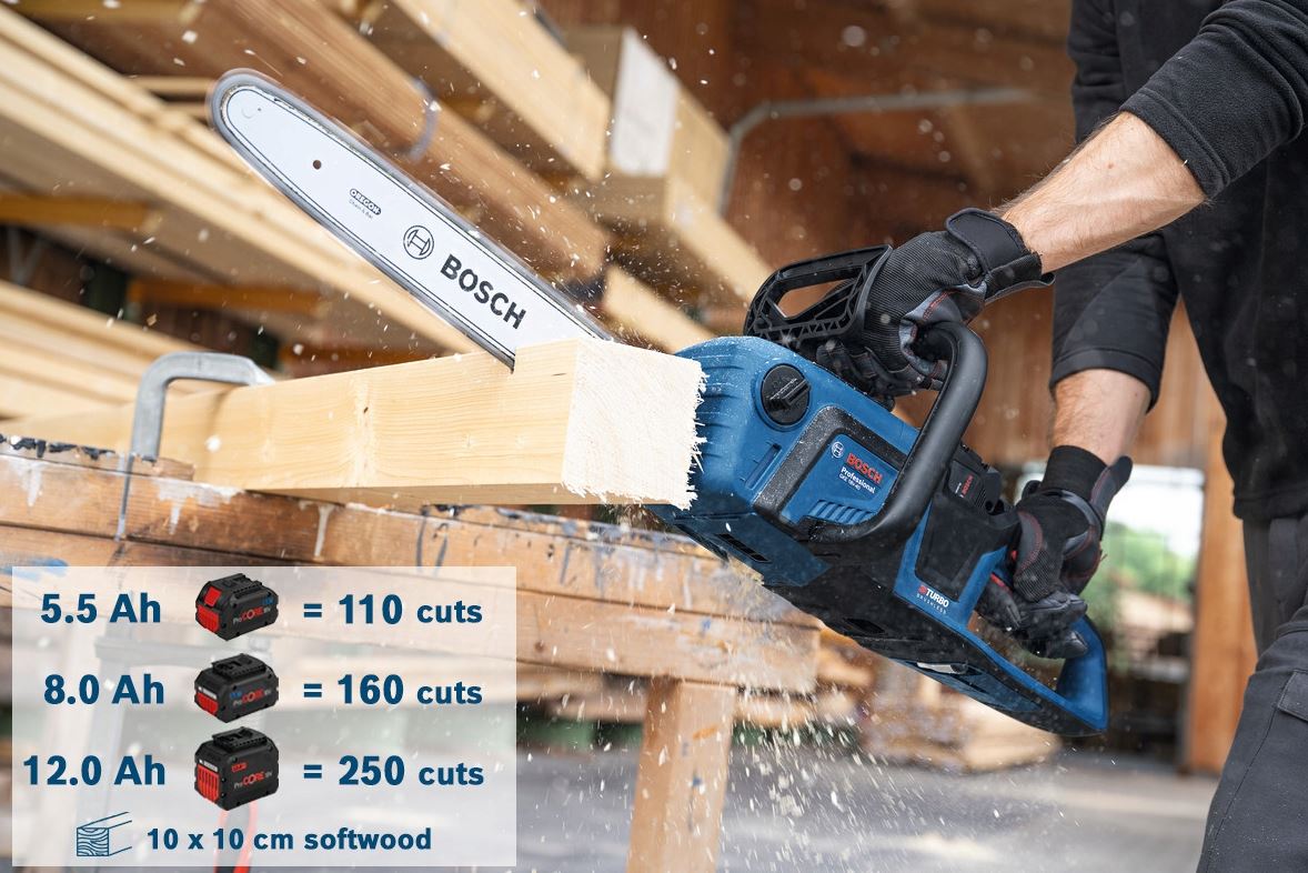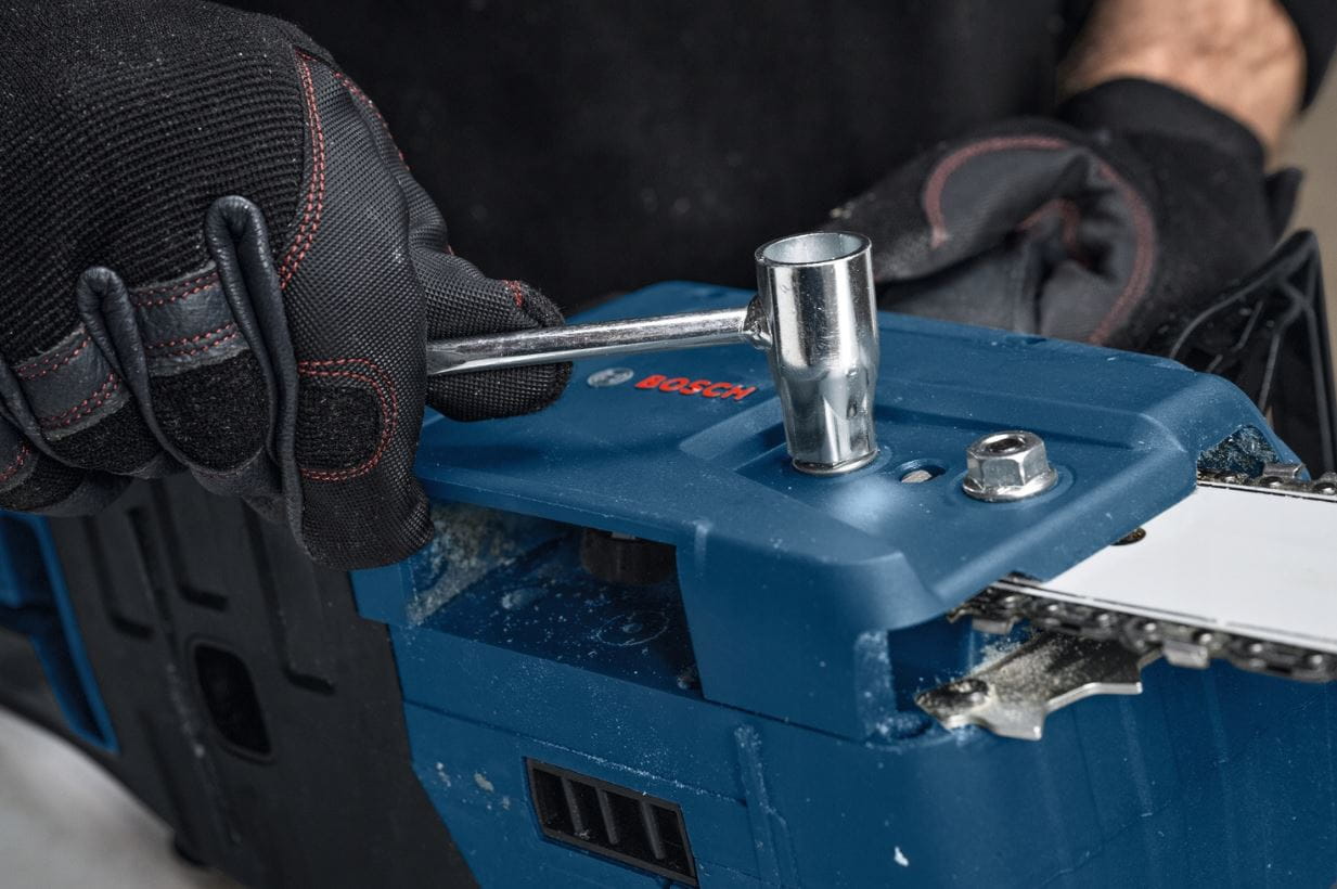 - Ten model piły łańcuchowej zapewnia komfortowy rozruch, nie wymaga dużych nakładów na konserwację i wyróżnia się długą żywotnością - Kompatybilność z systemem profesjonalnym 18 V firmy Bosch oraz z systemem akumulatorowym AMPShare dla wielu marek