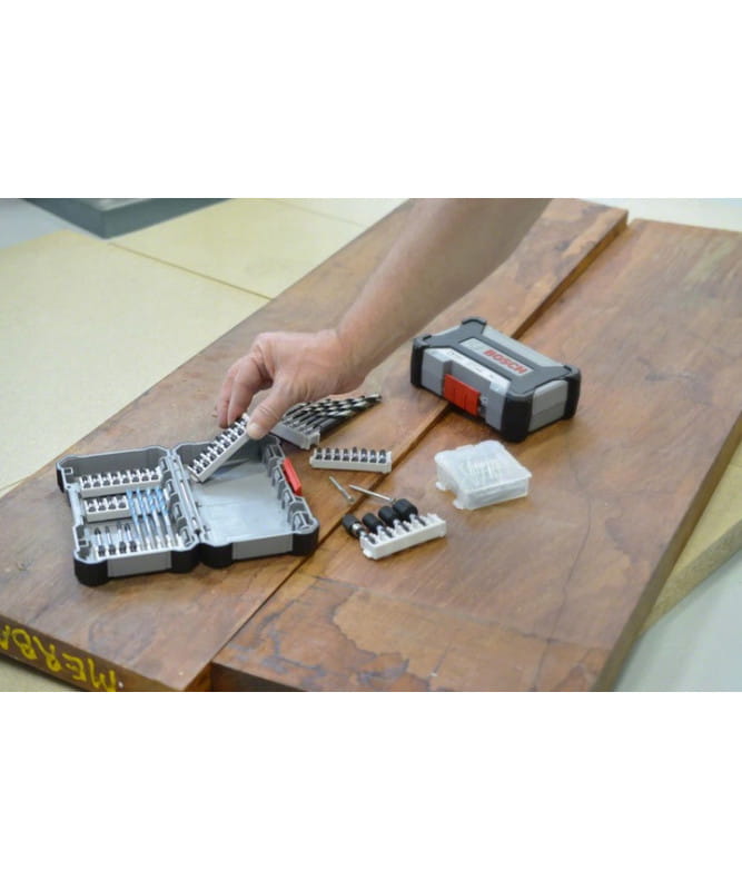 - Zestaw bitów: 1xPH1, 4xPH2, 1xPH3, 3xPZ2, 1xPZ3, 1xT15, 3xT20, 3xT25, 2xT30, 1xT40, 1xPH2, 1xPZ2, 1xT15, 1xT20, 1xT25, 1xT30