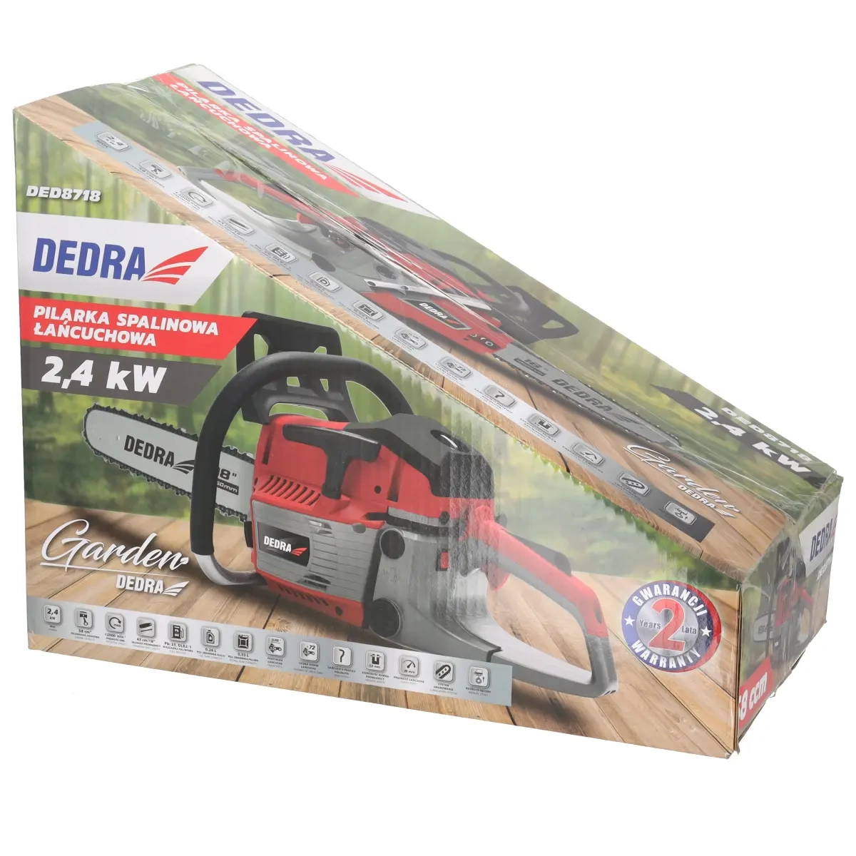 - Pilarka łańcuchowa spalinowa DEDRA DED8718 to solidne i wydajne urządzenie, które doskonale sprawdzi się zarówno w profesjonalnych zastosowaniach, jak i przy pracach przydomowych