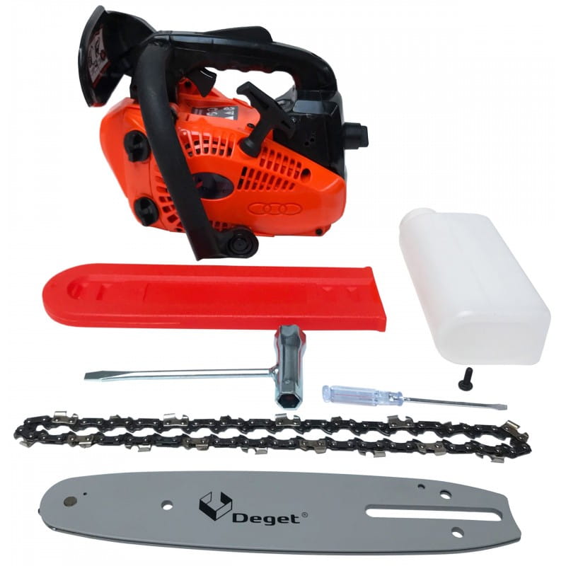Mocna, lekka i kompaktowa pilarka do gałęzi firmy Deget z silnikiem 1,2 KM to niezastąpione urządzenie dla każdego ogrodnika. Pilarka specjalnie zaprojektowana do pielęgnacji koron drzew. Duża moc doskonale piły radzi sobie z wszelakim rodzajem drzew, idealnie sprawdza przy cięciu i okrzesywaniu gałęzi. Piła posiada również system anty wibracji i automatycznego smarowania. Dobrze umiejscowiona rękojeść i środek ciężkości urządzenia pozwala na długotrwałą pracę bez zmęczenia. Piła cechuje się bardzo dobrą jakością wykonania oraz bardzo dobrymi podzespołami użytymi do jej budowy. Jej mała masa oraz duża moc sprawiają że staje się niezastąpiona w każdym gospodarstwie domowym i ogrodzie.