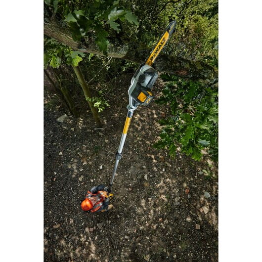 Piła łańcuchowa na wysięgniku DeWALT DCMPS567N jest wyposażona w wysoko wydajny silnik bezszczotkowy, dzięki czemu zapewnia do 55 cięć na jednym ładowaniu. Jest niezastąpionym urządzeniem szczególnie przydomowych prac związanych z przycinaniem gałęzi wysokich drzew.
