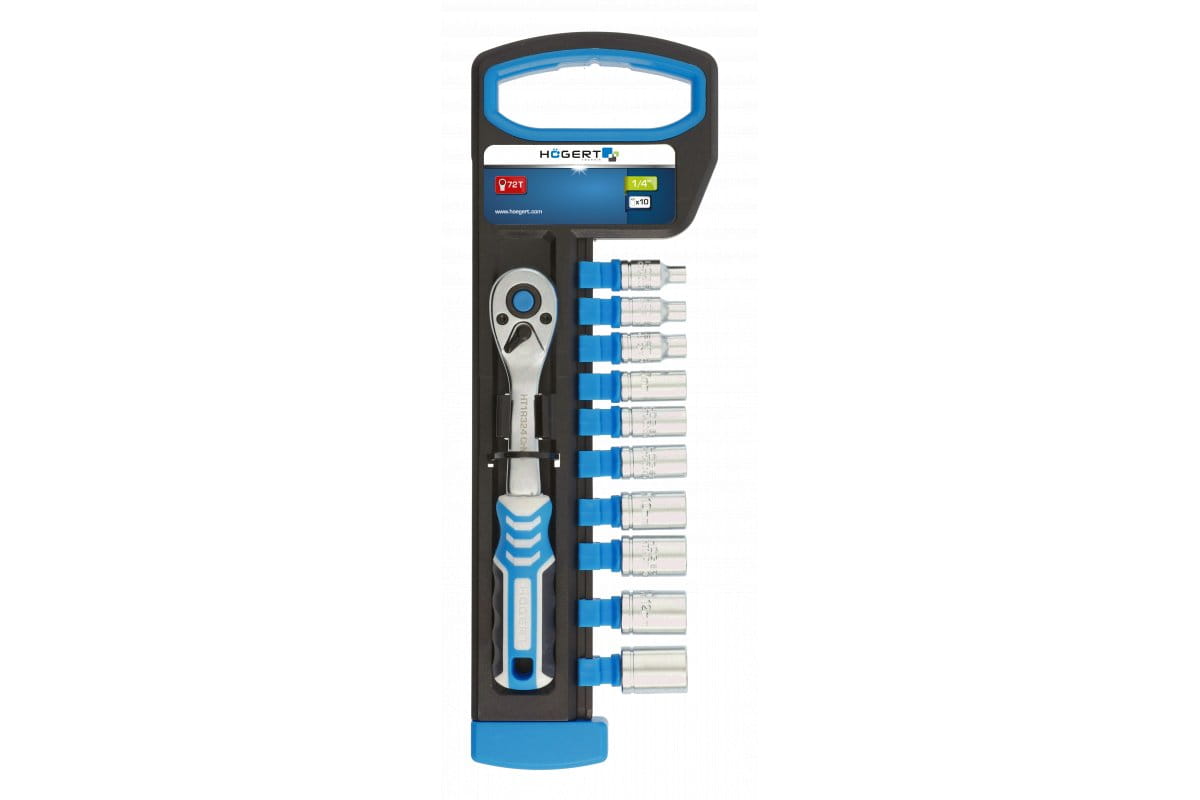 HOGERT GRZECHOTKA 1/4", 72 ZĘBY Z ZESTAWEM NASADEK HG-HT1R334