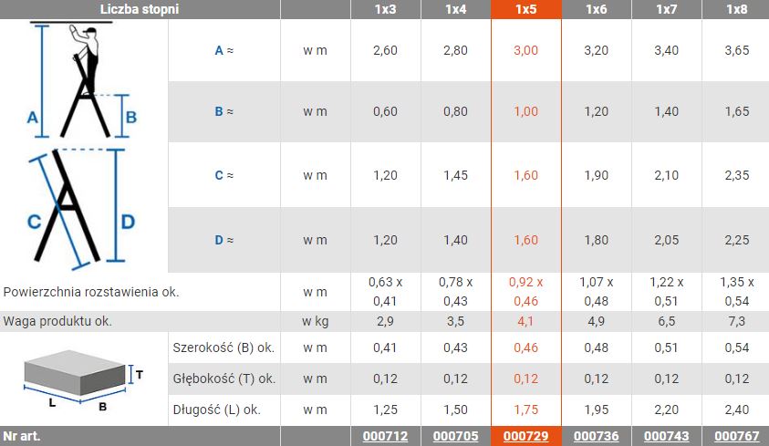 - Antypoślizgowe stopki zapewniające bezpieczną pracę na drabinie
