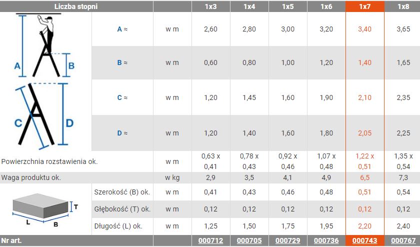 - Antypoślizgowe stopki zapewniające bezpieczną pracę na drabinie