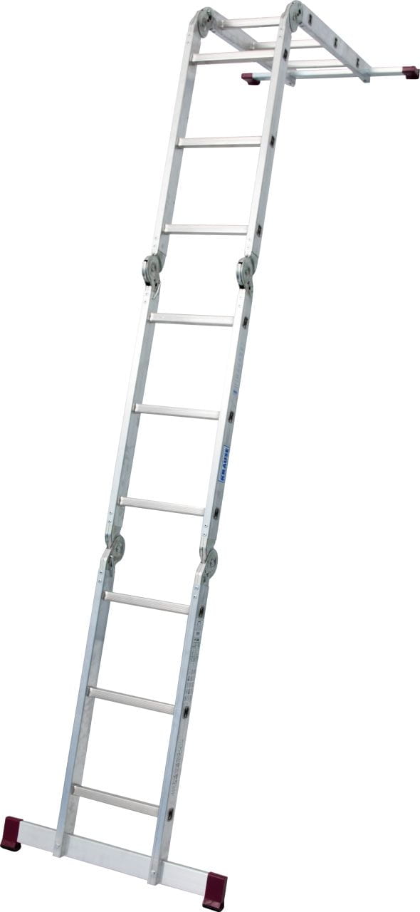 Czteroelementowa aluminiowa drabina przegubowa o uniwersalnym zastosowaniu.