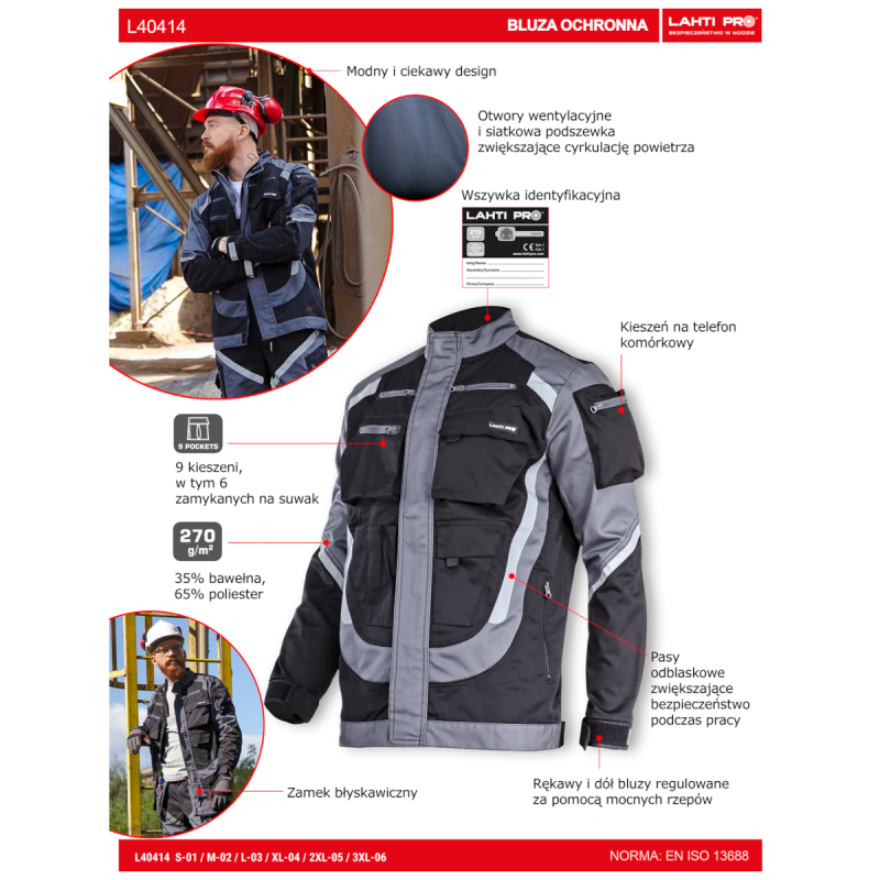 Bluza czarno-szara z pasami odblaskowymi "2XL" CE LAHTI PRO.