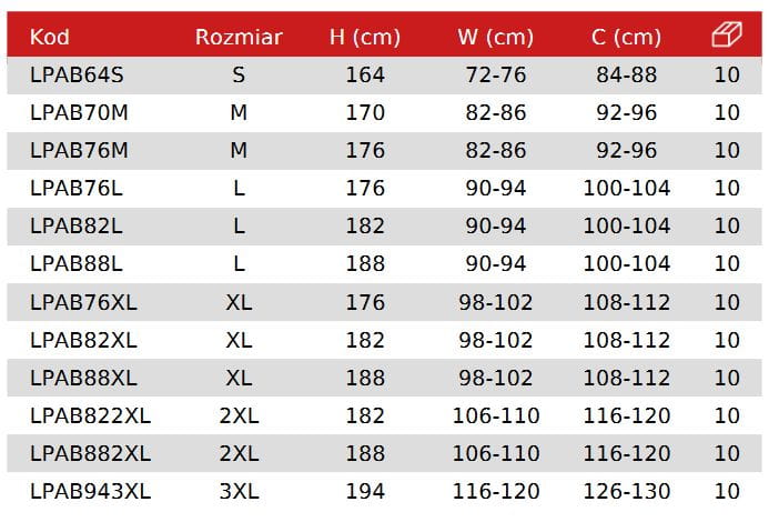 - Rozmiar: M na wzrost 176, klatka 92-96, pas 82-86