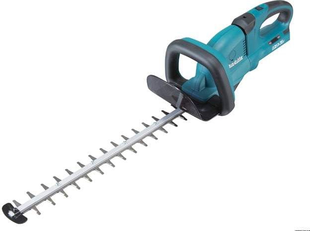 Akumulatorowe nożyce do żywopłotu Makita DUH551Z to narzędzie przeznaczone do cięcia i przycinania żywopłotów. Doskonałe elektronarzędzie akumulatorowe, którego zalety doceni zarówno profesjonalny ogrodnik, jak i ogrodnik amator do przycinania żywopłotów w parkach oraz na prywatnych posesjach. Pełna swoboda manewrowania oraz wysoki komfort obsługi, dzięki optymalnie wyważonej konstrukcji oraz wygodnej, 5-pozycyjnej rękojeści. Doskonała wydajność pracy przy jednoczesnym zasilaniu 2 akumulatorami 18V. Zwiększona odporność na pył i wilgoć, dzięki technologii XPT. Główną zaletą akumulatorowych nożyc do żywopłotu Makita DUH551Z jest zerowa emisja spalin oraz niski poziom hałasu. 5-pozycyjna rękojeść gwarantuje maksymalny komfort obsługiwania nożyc. Pokrętło do regulowania prędkości skokowej nożyc. Znakomite rezultaty pracy, dzięki optymalnie wyważonej konstrukcji urządzenia. Diody LED informujące o niskim poziomie naładowania akumulatorów. Łagodny rozruch elektronarzędzia oraz elektryczny hamulec gwarantuje bezpieczeństwo operatora w trakcie pracy.