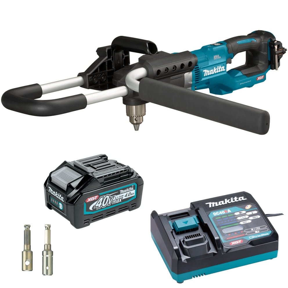 MAKITA DG001GM105 akumulatorowa wiertnica glebowa XGT 40V Max 4.0Ah. Akumulatorowa wiertnica glebowa zasilana akumulatorem XGT 40V Max. BLDC - bezszczotkowy silnik prądu stałego. Technologia XPT - podwyższona odporność na pył i wilgoć. Technologia ADT - Automatic Torque Drive Technology - automatycznie dostosowuje prędkość oraz moment obrotowy podczas pracy. Mechaniczna przekładnia 2 biegowa. Regulacja prędkości obrotowej spustem włącznika. Przycisk obrotów wstecznych pozwalający na łatwe wyciągnięcie świdra w przypadku zablokowania w podłożu. Lekka konstrukcja zapewnia wysoką manewrowość. Uchwyt pozwalający na wygodne wiercenie w ziemi. Ogranicznik momentu obrotowego. Główny włącznik zasilania z funkcją automatycznego wyłączania po czasie 5 minut, jeśli spust włącznika nie zostanie uruchomiony. Uchwyt wiertarski na kluczyk. Zabezpieczenie przed przeciążeniem, przegrzaniem oraz nadmiernym rozładowaniem akumulatorów. Dwie zintegrowane diody LED oświetlające obszar roboczy z funkcją opóźnionego wygaszania. Maksymalna średnica wiercenia w glebie piaszczystej 200 mm lub w glebie gliniastej 150 mm.