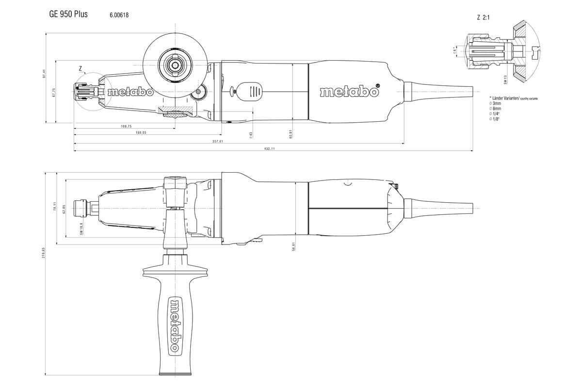 - Specjalista: poręczna szlifierka o szczególnie wysokim momencie obrotowym; idealna do szlifowania powierzchni wewnętrznych i zewnętrznych za pomocą ściernic lamelkowych (patrz osprzęt)