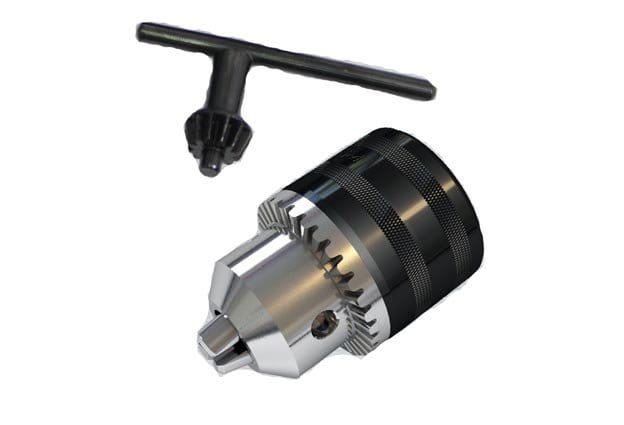 Wymienny uchwyt wiertarski zaciskowy zębaty z kluczykiem. Do mocowania na trzpieniu wiertarskim. Wykorzystywany w wiertarkach ręcznych, stojakowych. Uchwyt w całości wykonany ze stali. W zestawie znajduje się kluczyk służący do zaciskania i demontażu zaciskanych elementów roboczych. Zaciskanie za pomocą kluczyka gwarantuje stabilne umieszczenie elementu w szczękach. Uchwyt pozwala na pracę z prawymi i lewymi obrotami.
