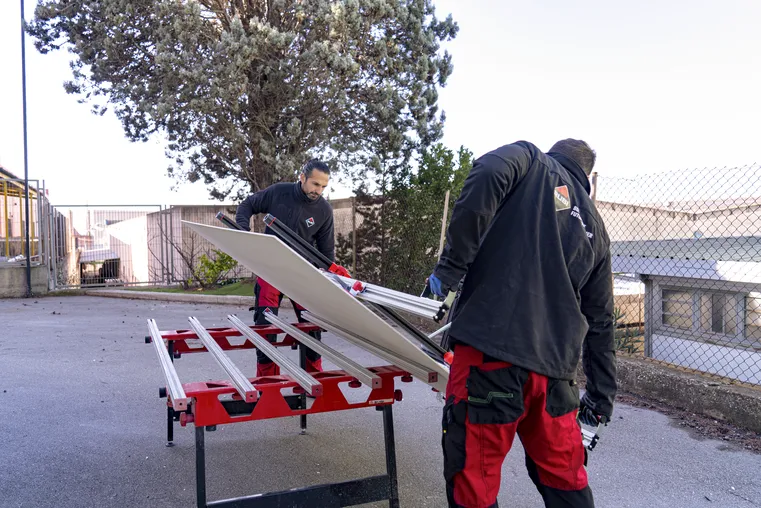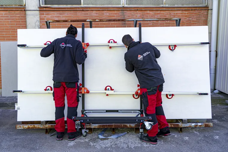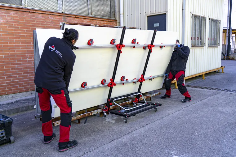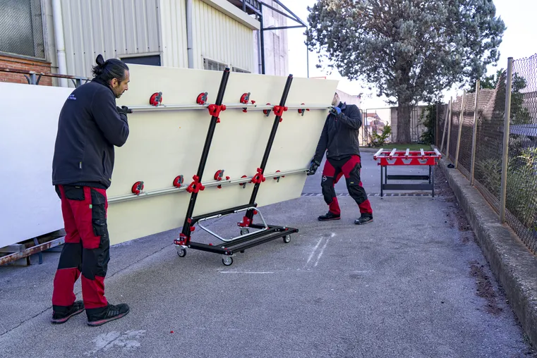 - Przenośnik SLIM EASYTRANS od RUBI jest specjalnie zaprojektowany do przenoszenia płyt ceramicznych wielkich formatów o długości do 320 cm.
