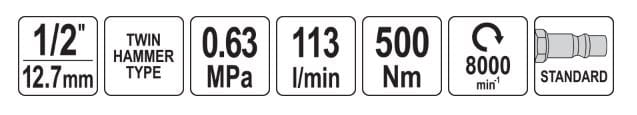 - Uchwyt narzędziowy: 1/2" (12.7 mm)