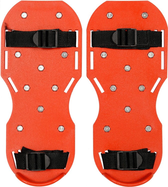 - Podeszwa wykonana z tworzywa. Grubość 6 mm , długość max. 30 cm , szerokość max. 13,5 cm. Posiada ogranicznik na pięcie wys. 40 mm, zapobiega on zsuwaniu się buta. W podeszwę wkręcone jest 13 kolców fi 6 mm w górnej części są one gwintowane i zamocowane nakrętką. Wysokość kolców pod podeszwą wynosi 45 mm. Posiada również wycięcia do założenia paska mocującego od strony pięty i od strony palców. W kpl dwa paski tekstylne z plastikowa klamerką, długość pasków ok 50 cm , szer. 25 mm.