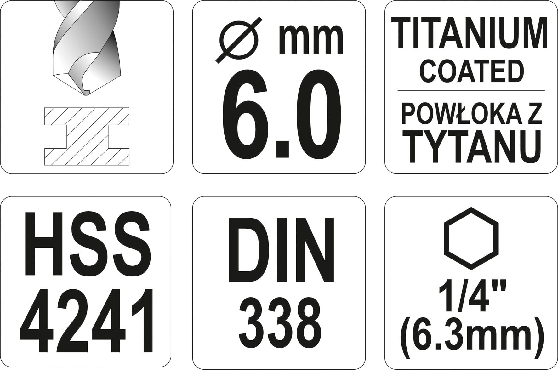 YATO WIERTŁO DO METALU HSS-TIN 6,0MM HEX YT-44764