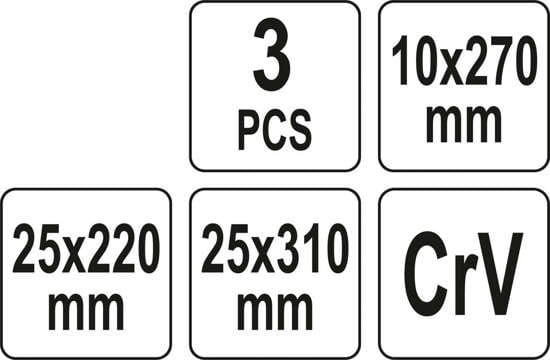 - 3 szt.: 25 x 220 mm, 10 x 270 mm, 25 x 310 mm